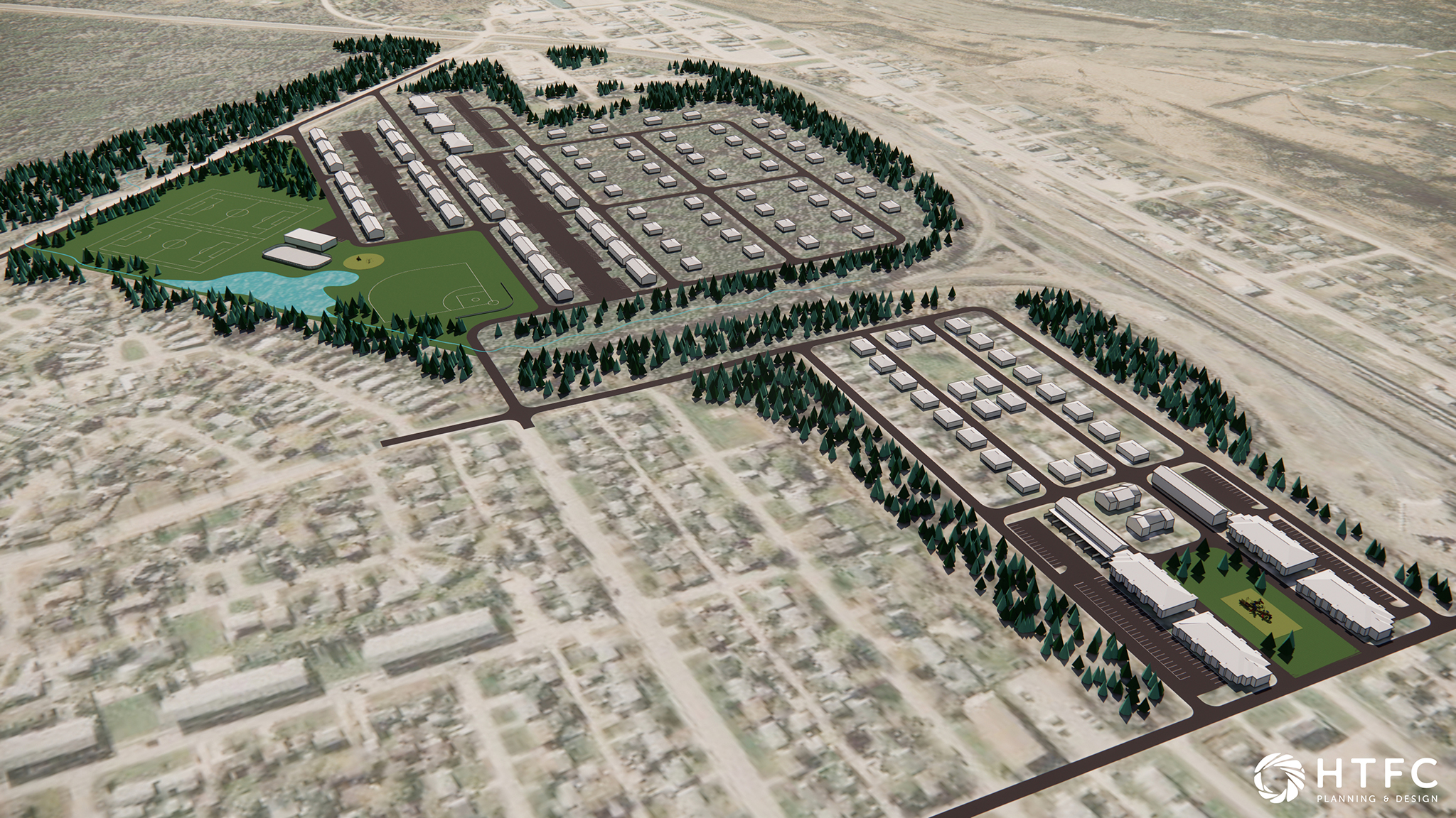 In the future, the Timberland I area will be redeveloped with apartment buildings near 9th Street East on Young Avenue and Dorian Avenue, with a playground and small park in between. Behind these, the plan proposes two sets of 8-plex side-by-side housing units and two duplexes. Single-detached houses are proposed at the rear of the area, on lots that will be twice the size of the existing trailer lots to give more desirable sites.
